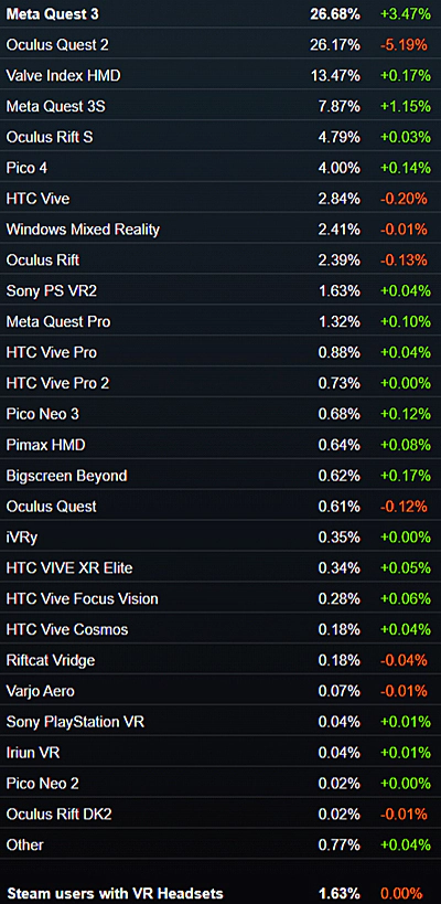 HTC Vive Focus Vision | 0.28% | + 0.06% |